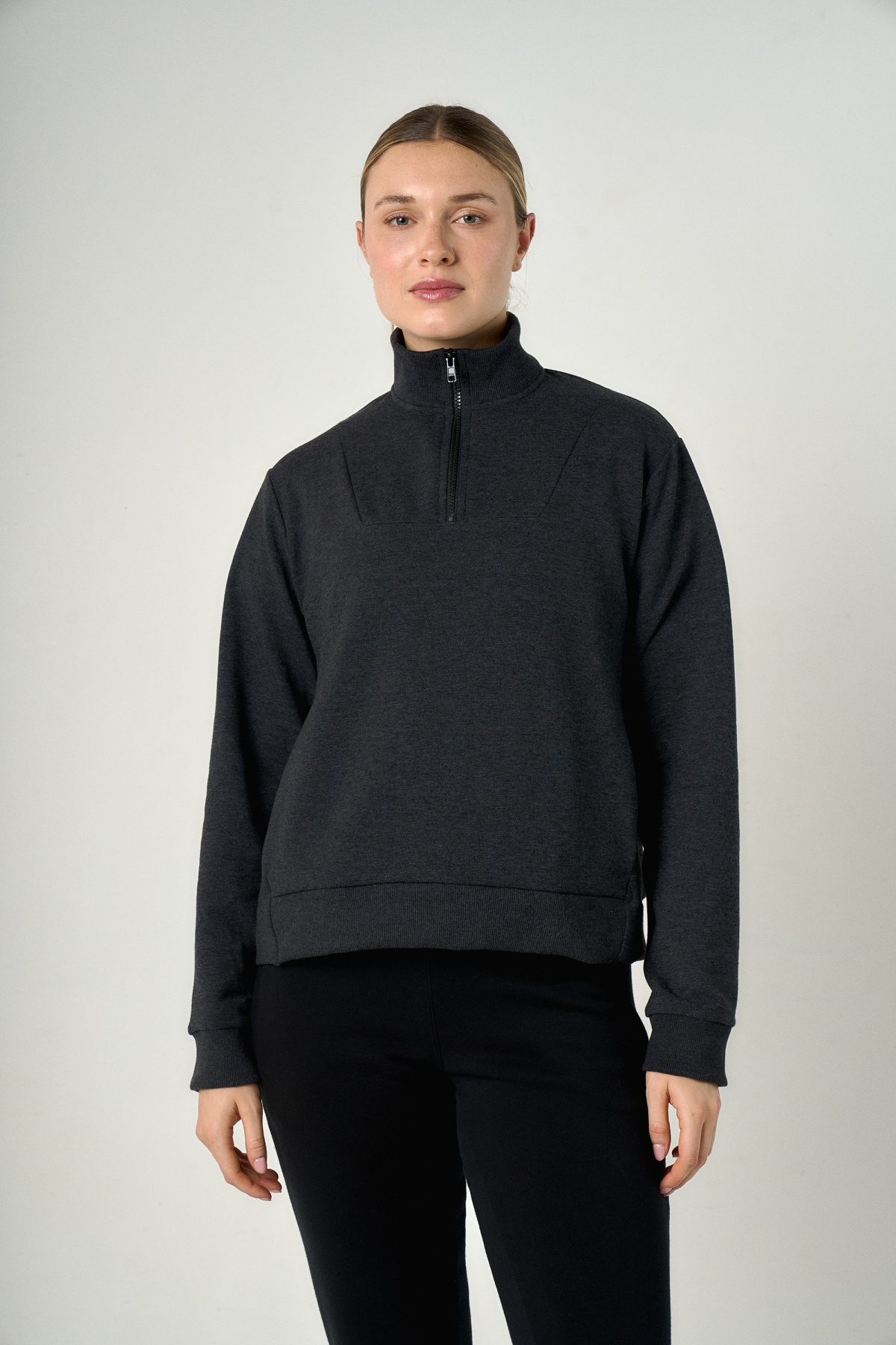Buzo medio cierre de tacto extrasuave y liviano, confeccionado con tejido Frisa Invisible de Algodón Gamuzado, con cara interna frisada asegurando abrigo y suavidad con el confort necesario para todo el día. Diseño minimalista para acompañar todos tus días ofreciendo la máxima comodidad y versatilidad. Presenta cuello con ribb y cierre, bolsillos laterales y mangas con puño para sumar al confort en cada uso. Detalle de bordado MWK al frente.