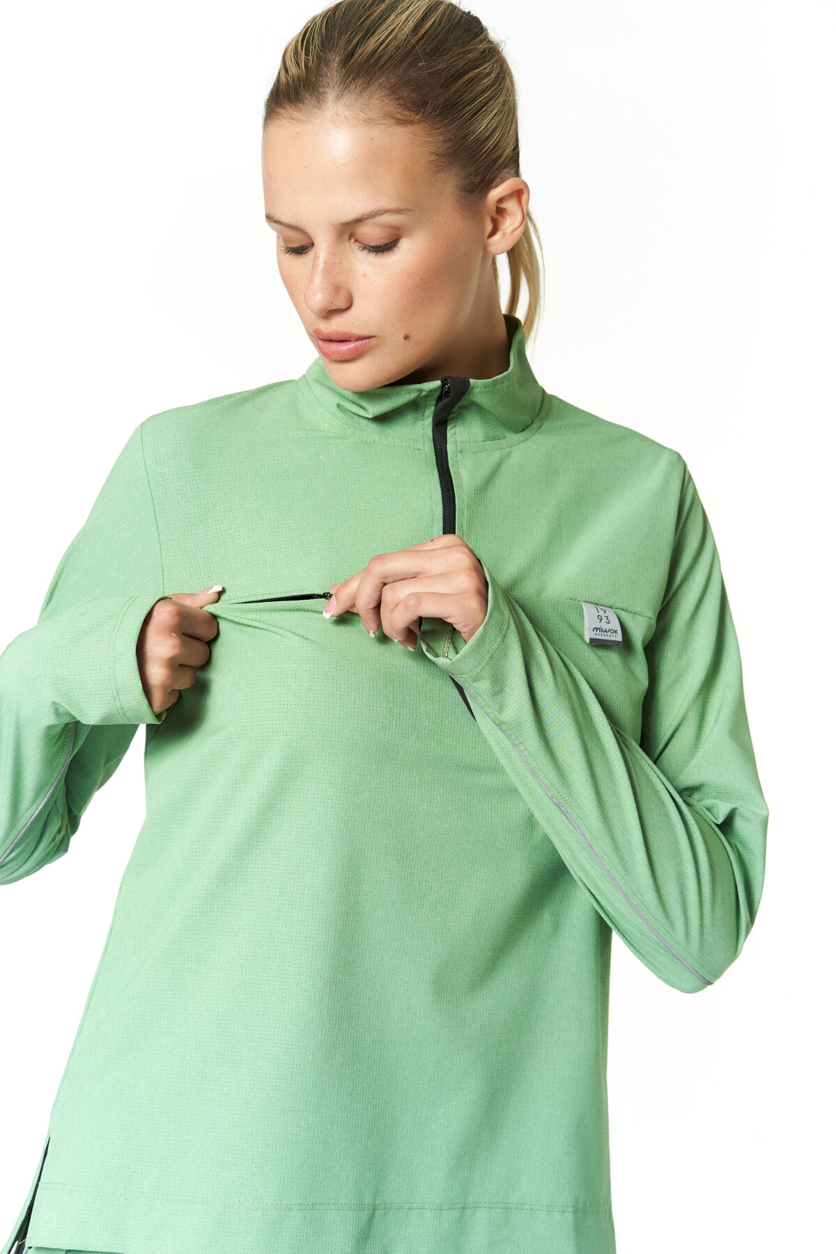 Buzo medio cierre realizado en textil microfibra liviana súper dry: Neutraliza el sudor para mantener la transpirabilidad. Diseñado para ser altamente funcional en el entrenamiento