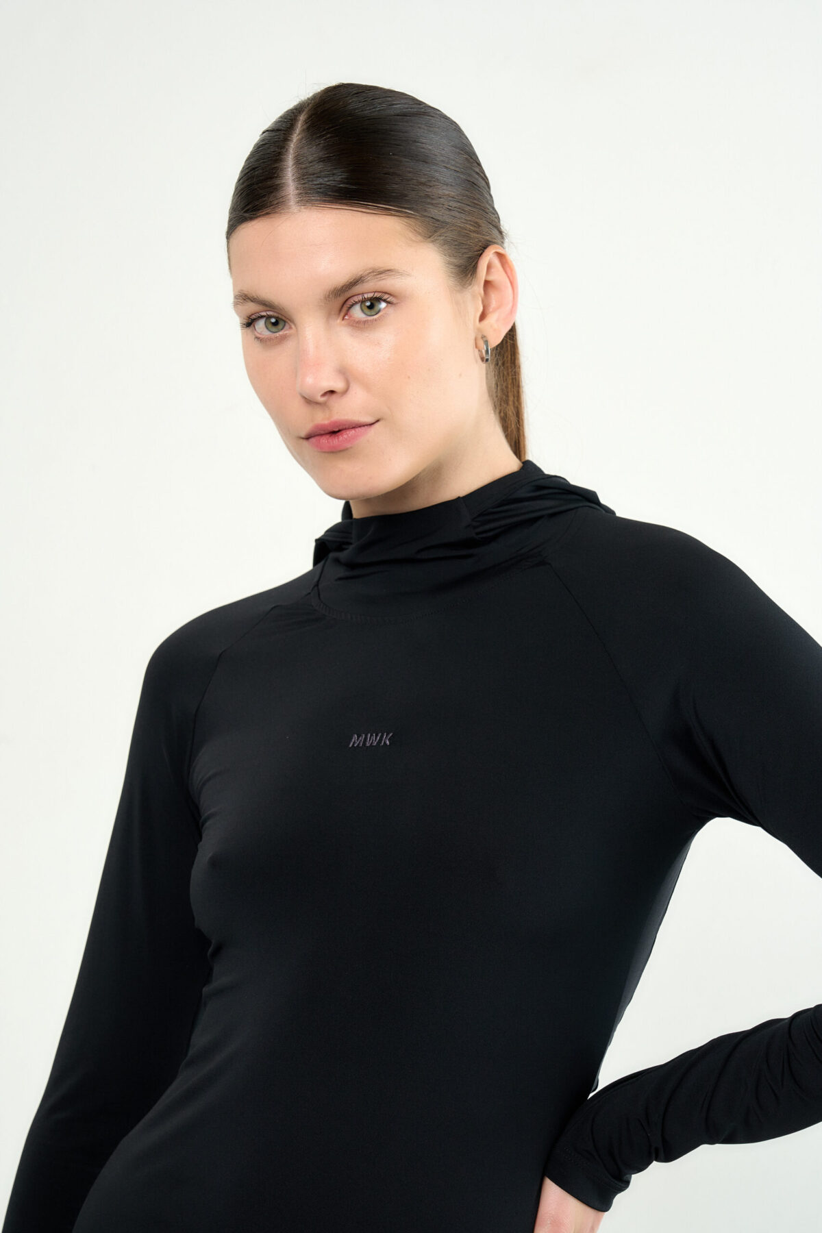 Camiseta térmica en tela fina, frizada y elástica; con capucha y manga larga. Pensada como una 1ra piel ideal para tus actividades de invierno. El buzo Huili cuenta con una abertura en el centro de capucha que funciona como pasador para el pelo y así obtener una anatomicidad completa en el calce de la misma y una abertura sobre el puño de la manga para lograr un calce perfecto.
