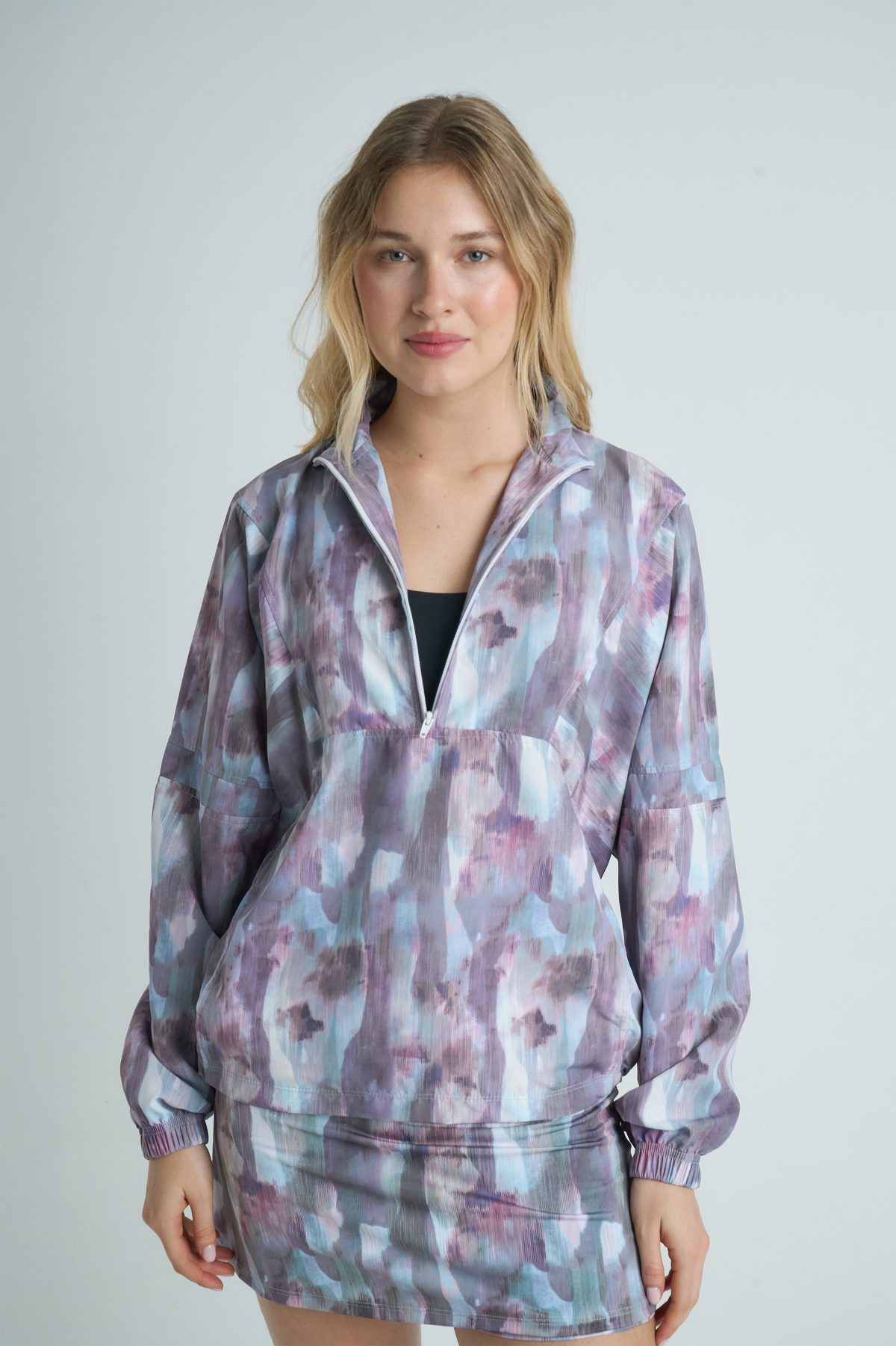 Buzo medio cierre rompeviento estilo anorak estampado con ajuste en puños y cintura, presenta detalle de cordón elástico con ajuste por tancas. Diseñado en textil de microfibra plana, conforma un diseño urbano y funcional para destacar todos los días.