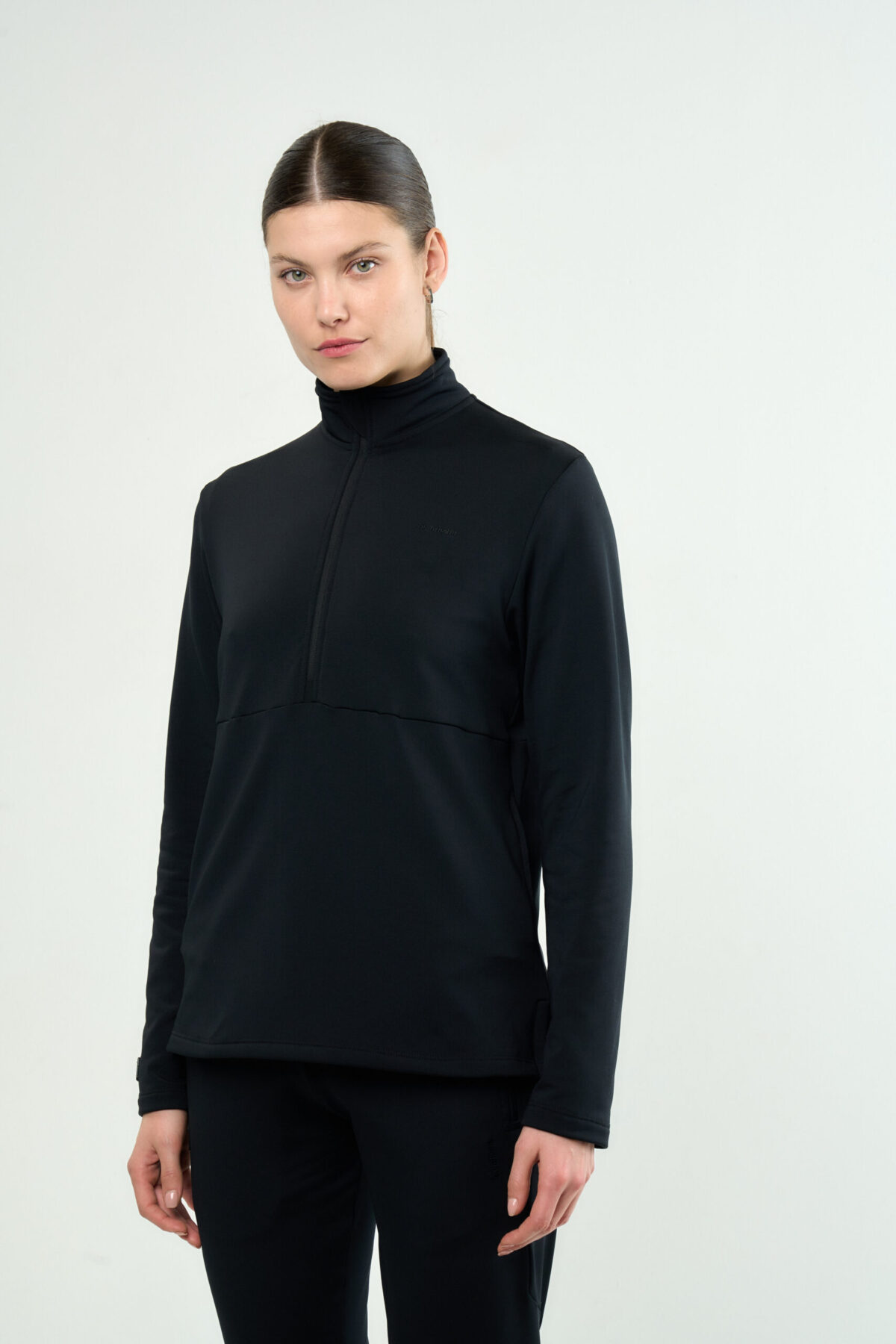 Buzo medio cierre en tejido confort frisado que potencia las propiedades térmicas de la prenda y gracias a su composición con spandex se adapta perfectamente al cuerpo para un libre