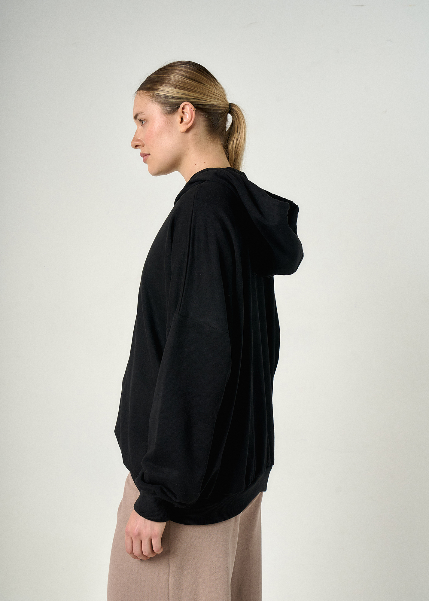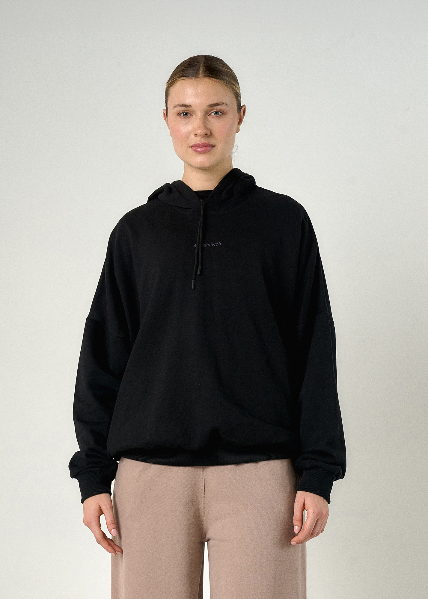Buzo de Friza de algodón poliéster de silueta oversize, con hombro caído, capucha estilo monje, bolsillos escondidos en laterales y puños en mangas y cintura. Con detalle bordado al frente y cordón de ajuste con punteras de goma en capucha. Una prenda ideal para la moda urbana que se viene.