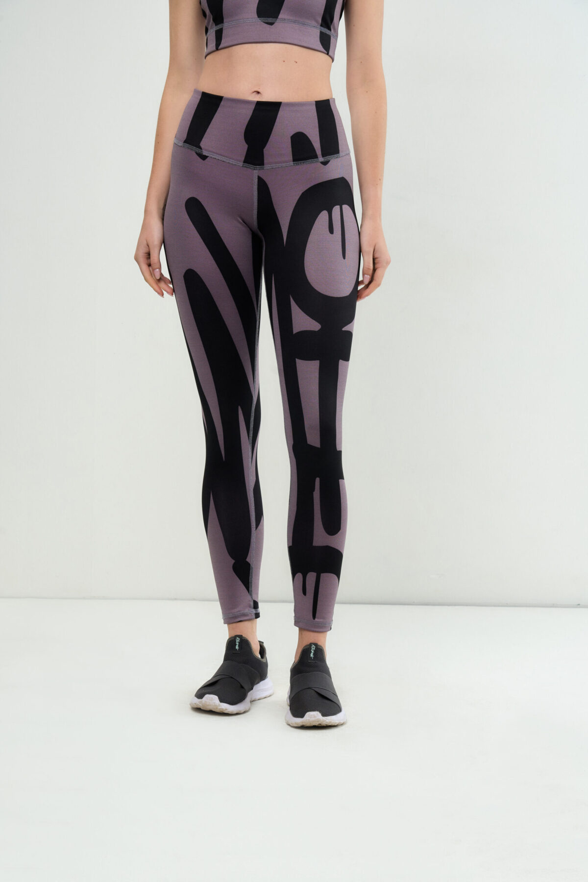Calza reversible estampada, confeccionada con tejido ecológico teñido sin consumo de agua. De cintura alta y doble, tejido ligero y elástico, efecto segunda piel. Estiliza la figura,