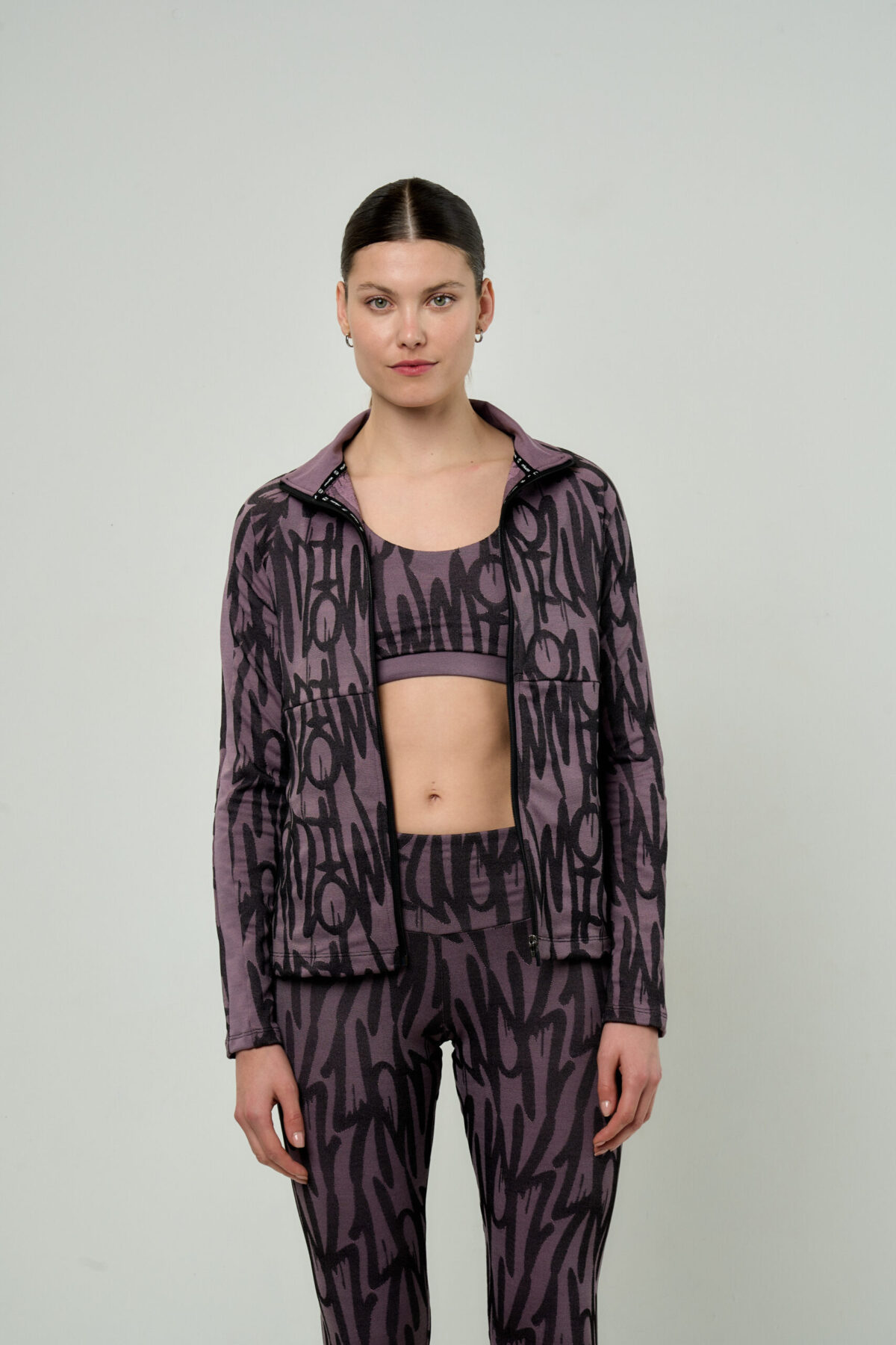 Campera deportiva combinada con tejido jacquard diferenciado, con proceso de teñido ecológico sin consumo de agua. tejido ligero y elástico, efecto segunda piel. Estiliza la figura, aportando un máximo control sin oprimir.
