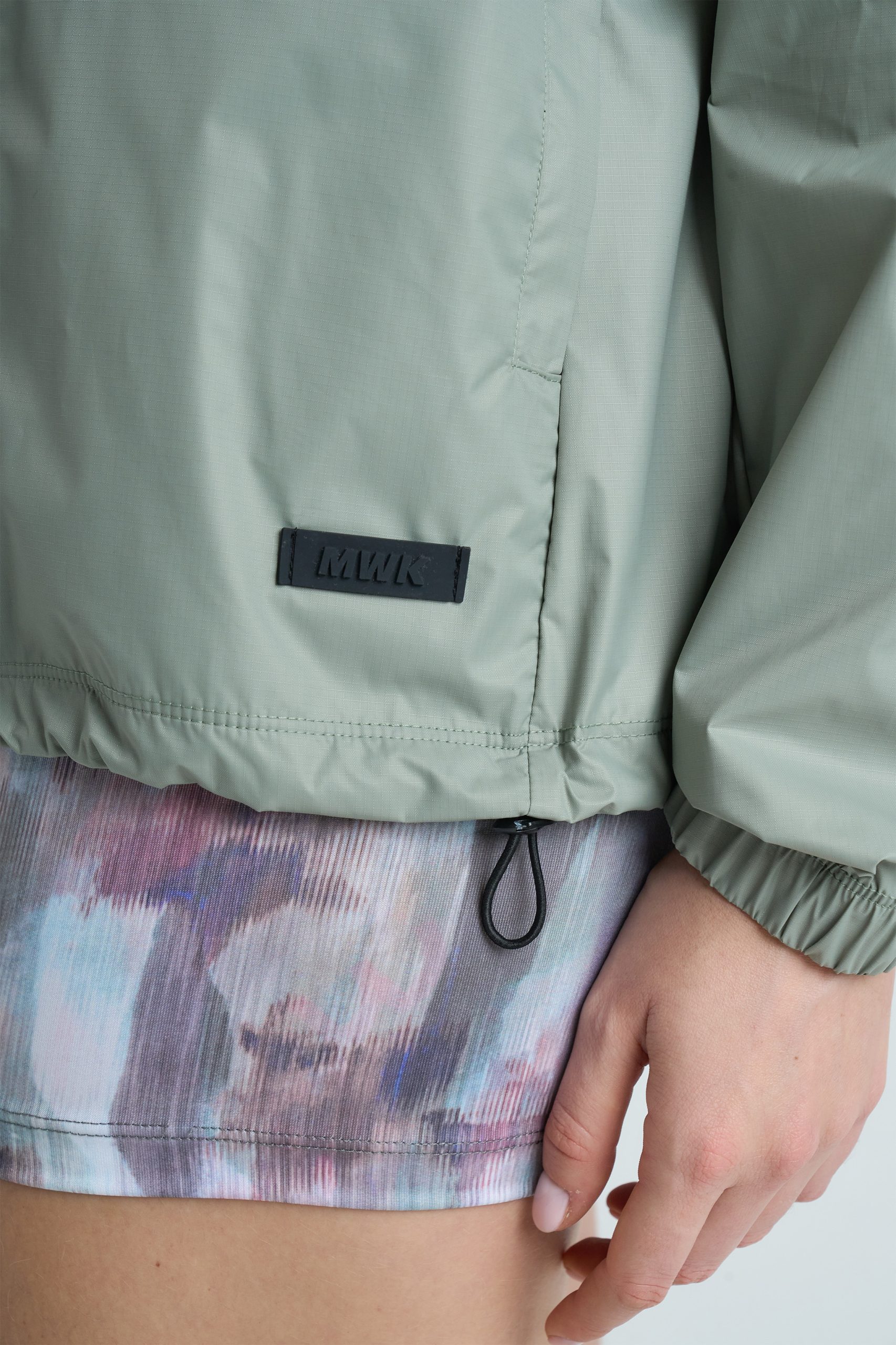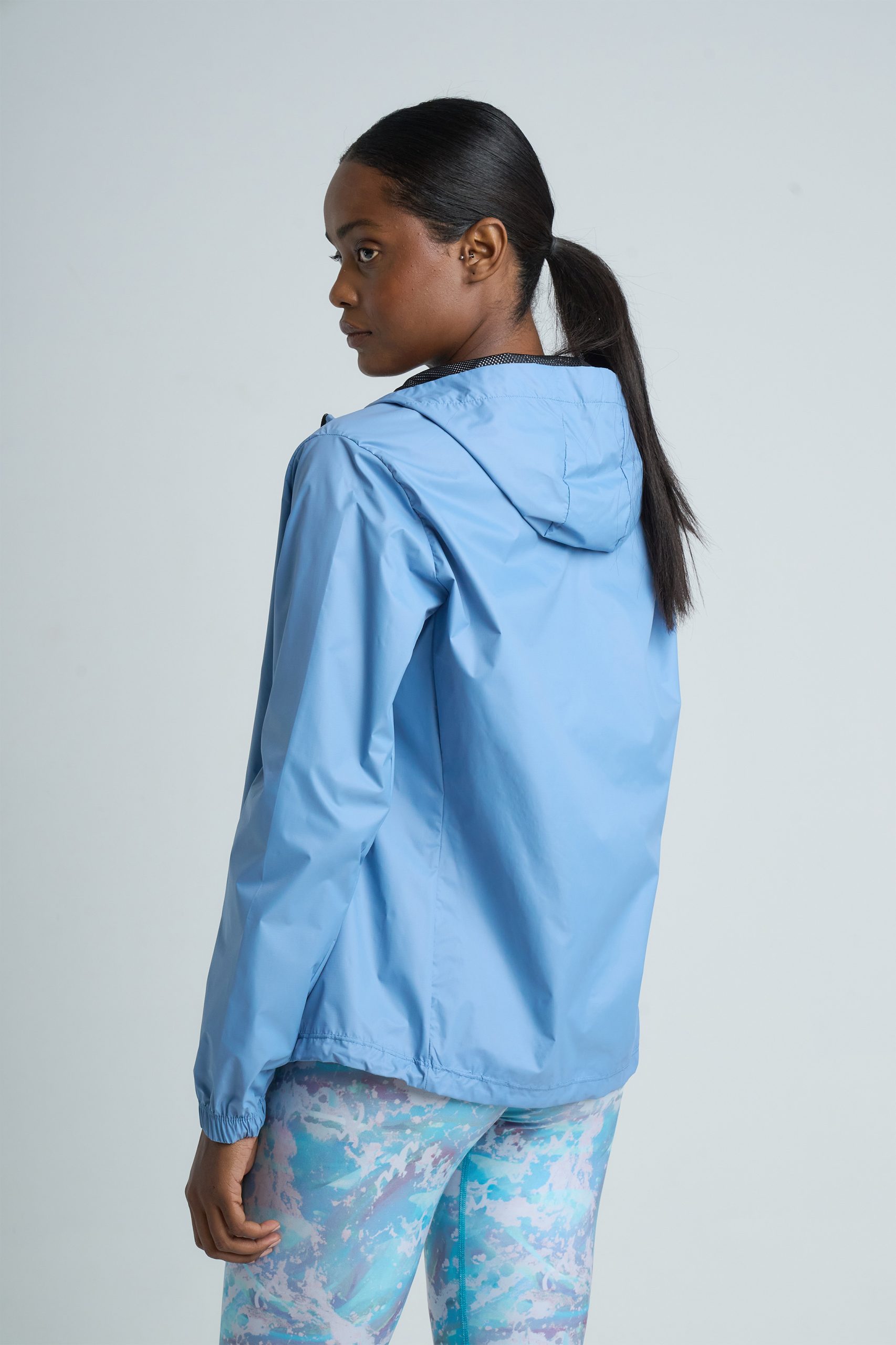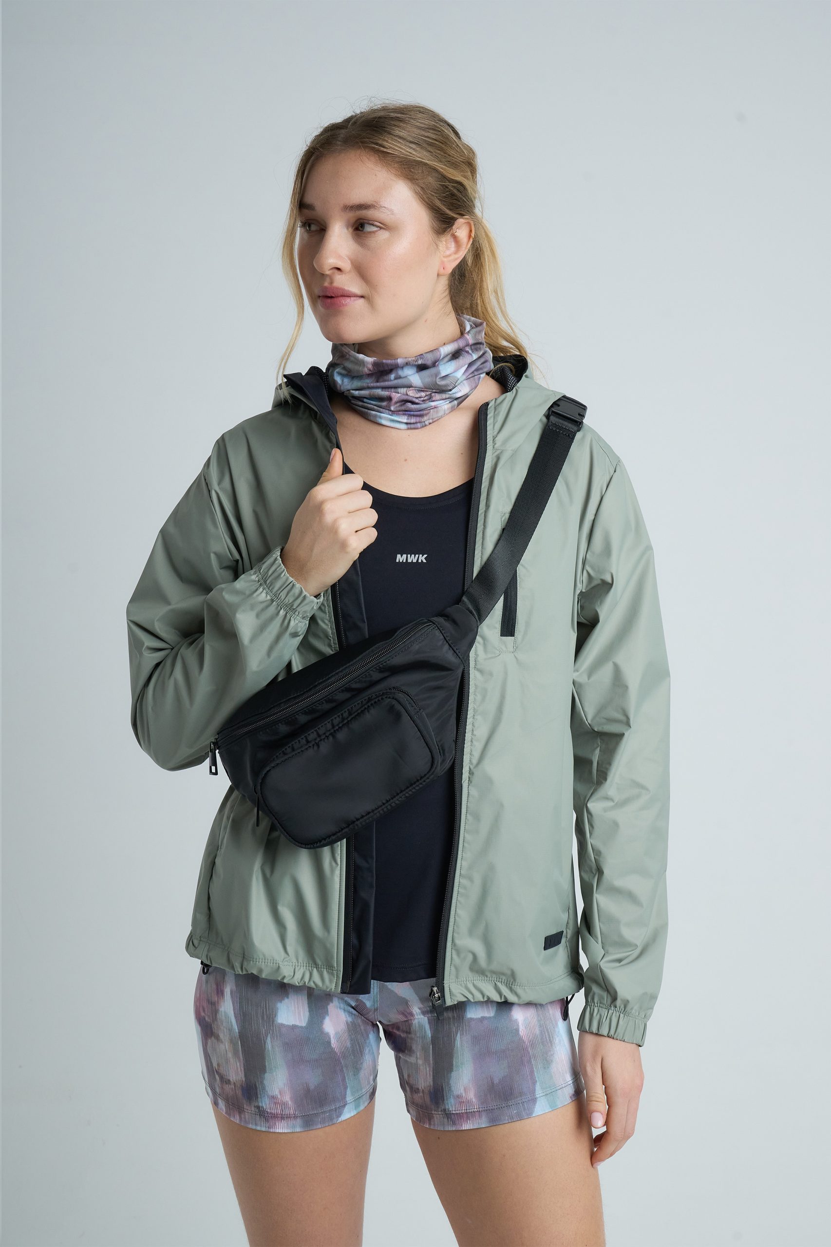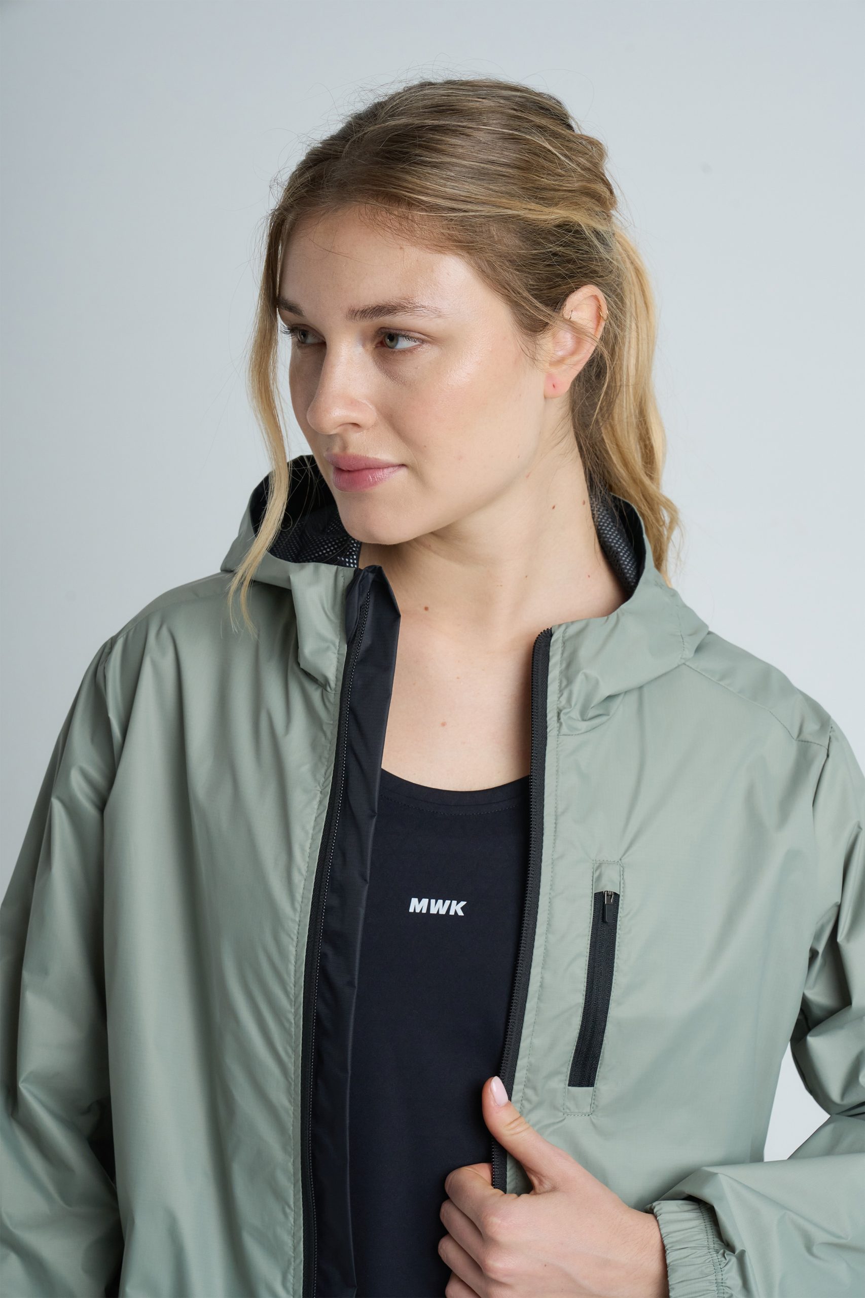 Campera de running rompeviento, confeccionada en textil semi mate con recubrimiento interno impermeable, soporta 2000mm de columna de agua. Con diseño optimizado para ser altamente funcional, posee vista interna en cierre, cintura ajustable para proteger e impedir el paso del agua, amplios bolsillos laterales y superior con cierre, capucha y ajuste de elástico en puños. Posee bolsa interna para autoguardado. Textil no transpirable.