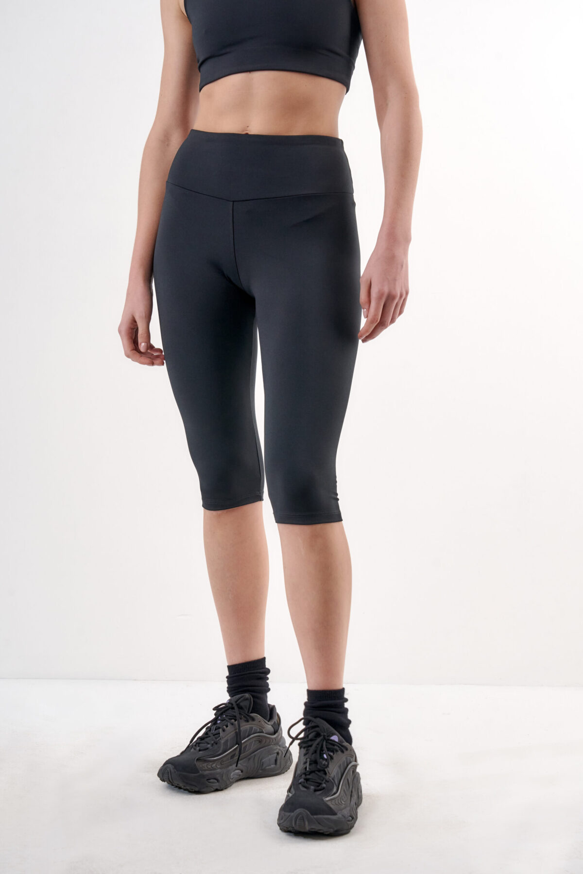 Capri clásico de Miwok renovado. Textil que se adapta a diferentes cuerpos y permite mantener el cuerpo seco y un rango de movimiento natural. Tejidos ligeros y suaves que ofrecen el confort necesario para actividades de mediano a alto impacto. Con detalle de vinilo reflex MWK.