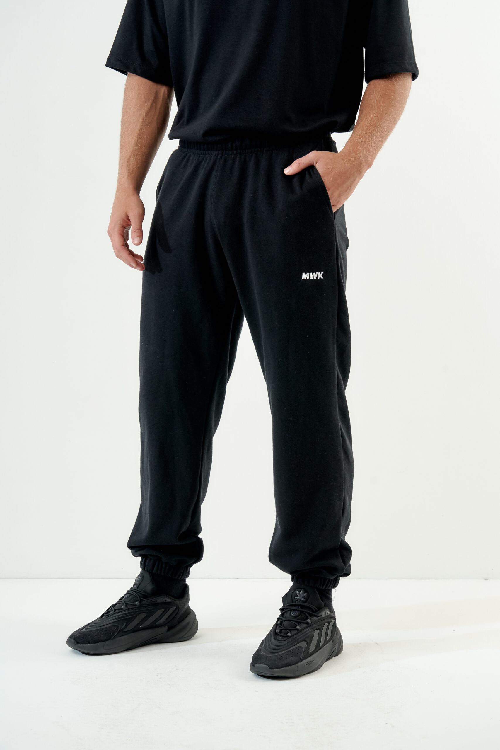 Jogger de calce holgado con cintura ajustable y puños en tobillos. Confeccionado con tejidos ligeros y suaves con el confort necesario para todo el dia. Detalle de bordado MWK