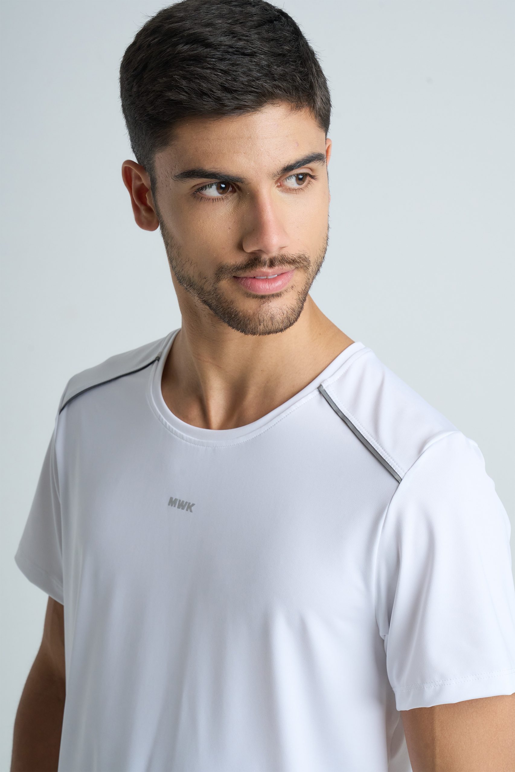 Remera deportiva de entalle clásico, diseñado para el deporte de alto rendimiento nocturno con sutiles recortes favorecedores para armar la silueta. Confeccionado en textil ultraliviano de Microfibra ultra soft con spandex que se adapta al cuerpo para ofrecer un libre movimiento. Con su tela de secado rápido, esta prenda es ideal para mantenerte cómodo y en rendimiento durante tus entrenamientos. Cuenta con detalles de vivo en el frente y vinilo reflex MWK.