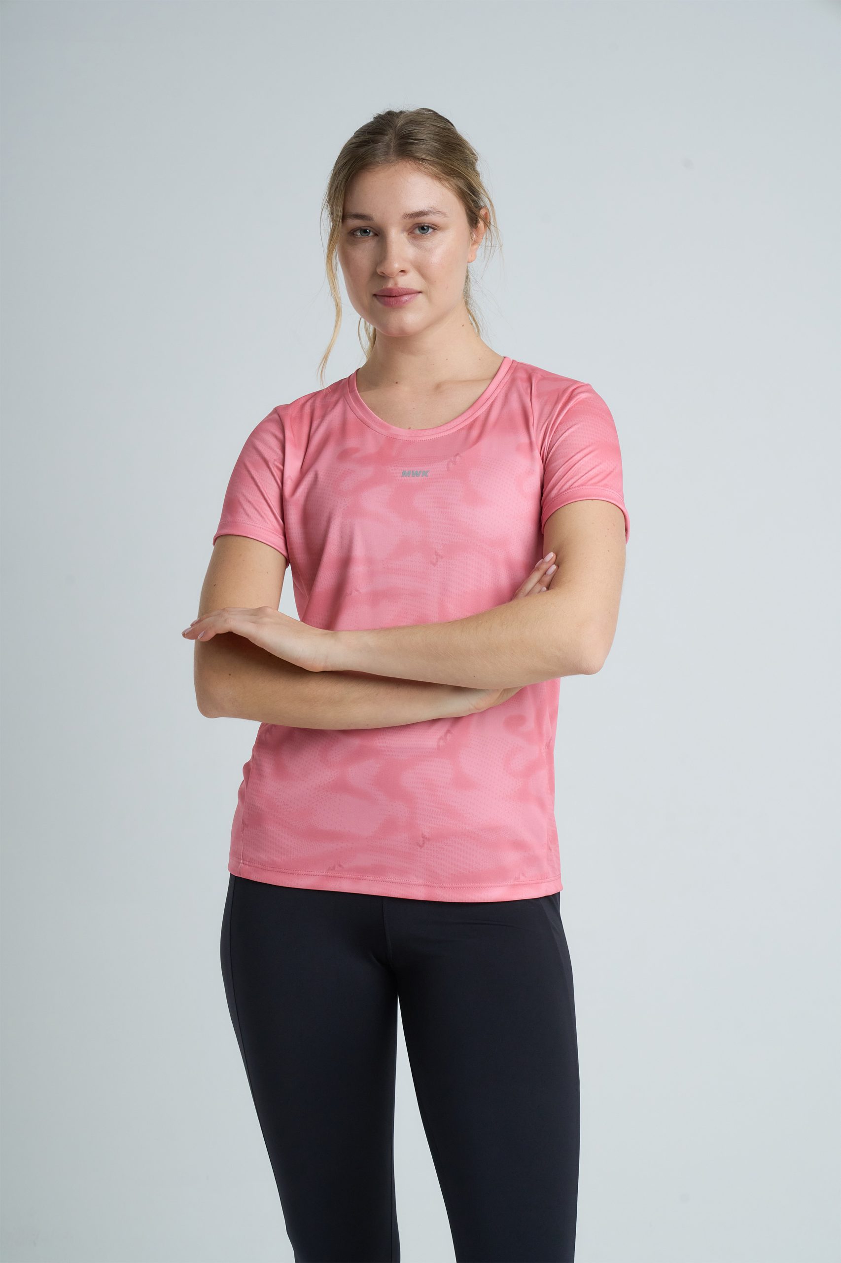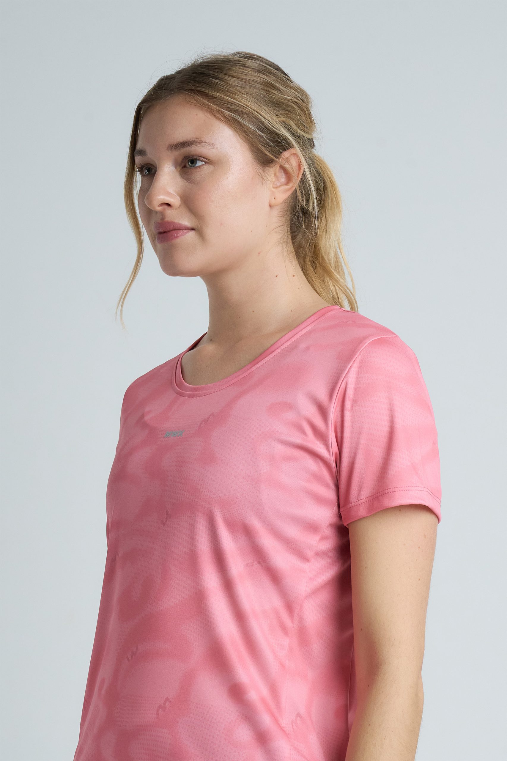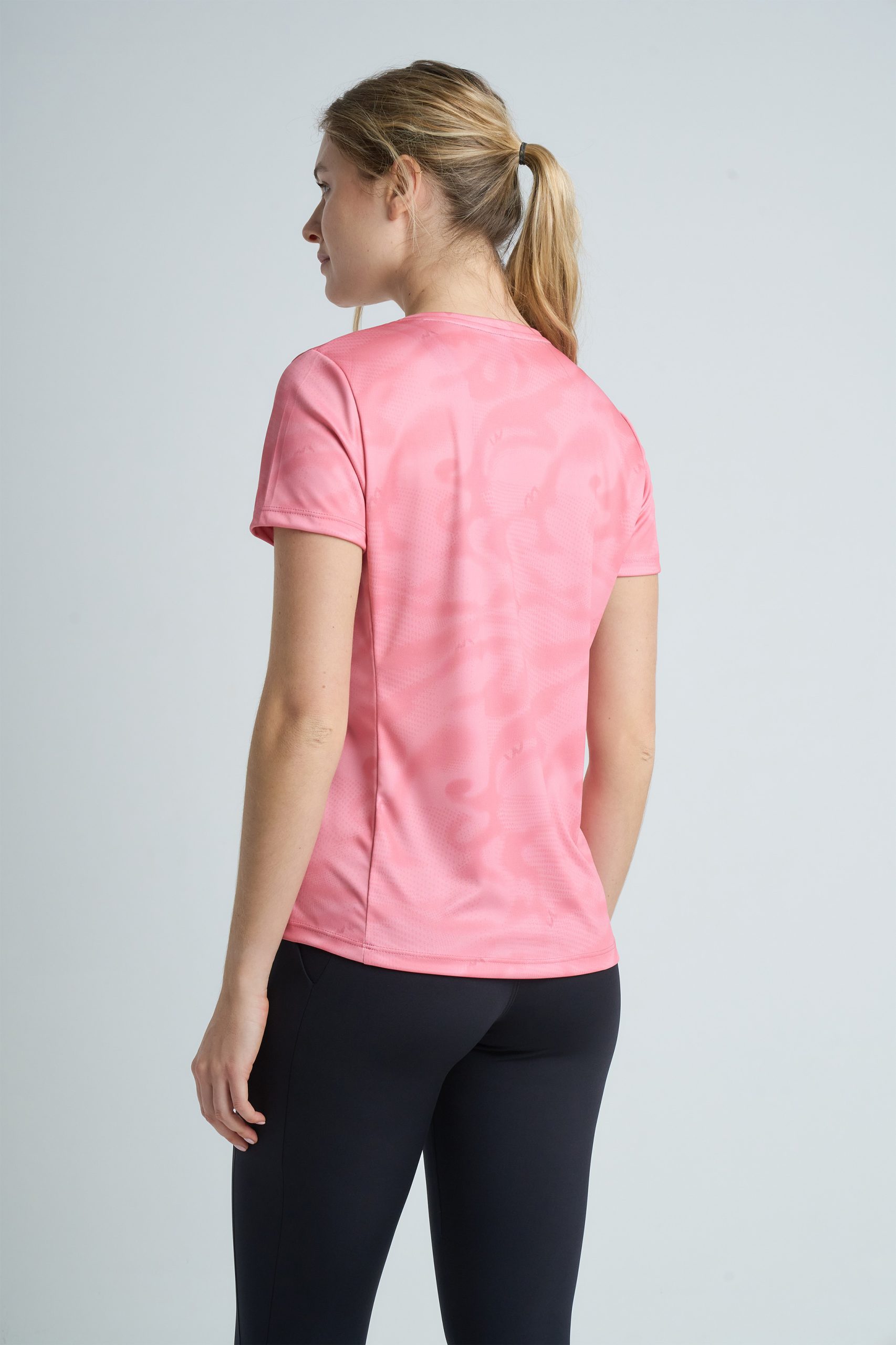 Remera deportiva estampada de entalle clásico con recortes pensados para dibujar y favorecer la silueta femenina.