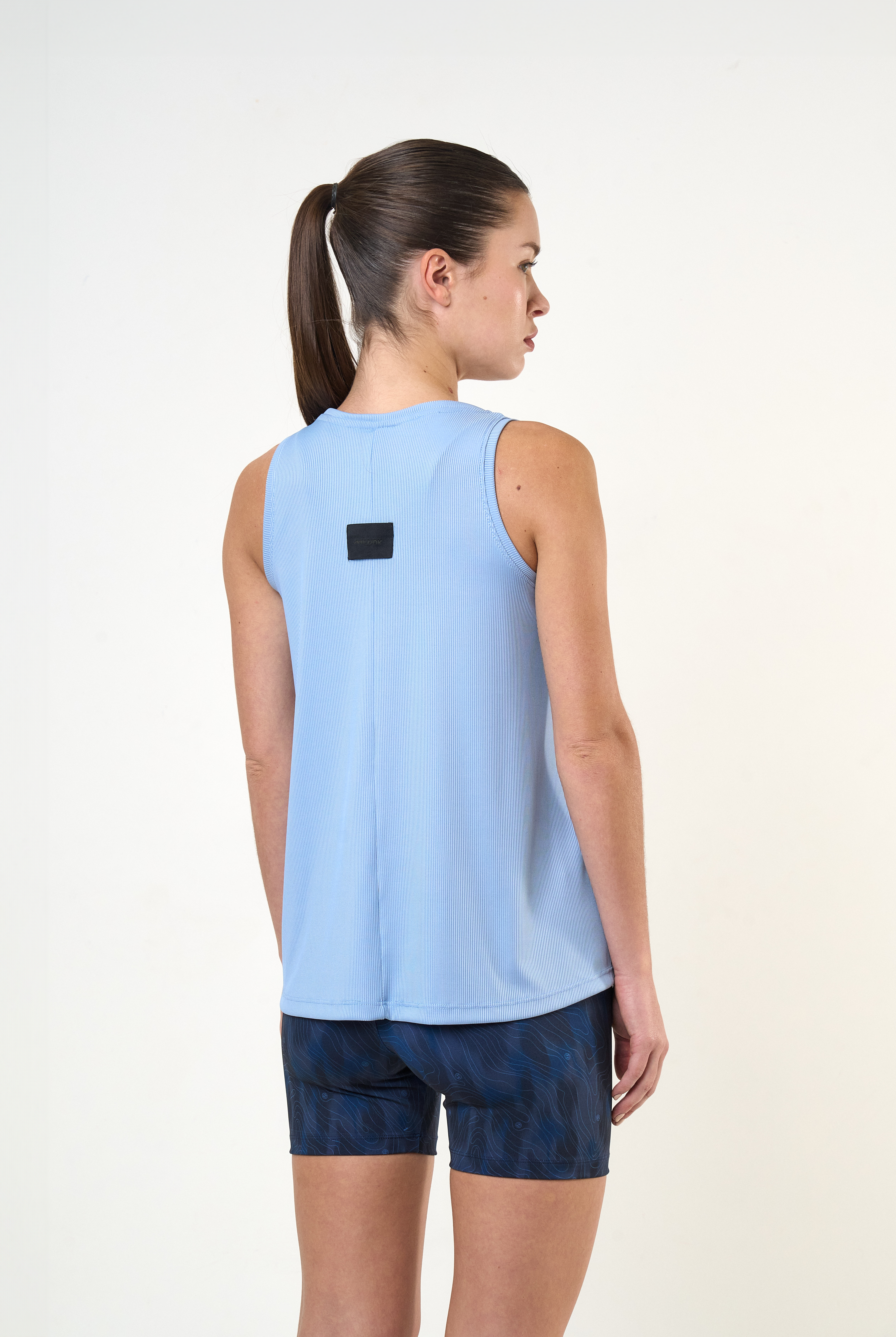 Musculosa de calce holgado y silueta evasé, presenta escote redondo. Confeccionada en textil premium de microfibra con spandex. 92% Poliéster 8% Elastano