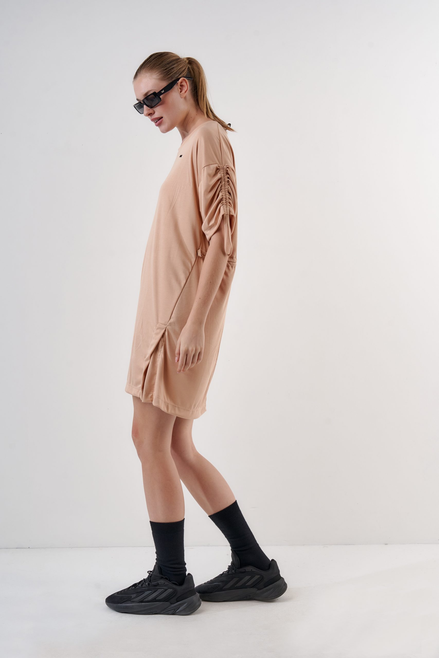 Vestido de silueta amplia y relajada, con un diseño urbano y versátil. Posee jaretas laterales regulables que permiten ajustar el largo y generar diferentes efectos de frunce. Confeccionado en un tejido liviano, suave y con caída natural, ofrece comodidad y movimiento durante todo el día. Presenta detalle aplicado MWK en 3D y etiquetería en espalda, aportando un toque distintivo y moderno.